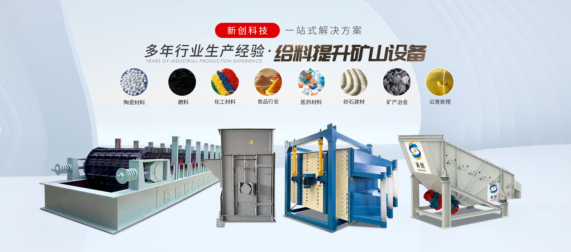 邯鄲市峰峰礦區(qū)新創(chuàng)科技有限公司是振動設備、給料設備、振動篩分設備、輸送設備、提升設備、除塵設備等制造廠,玻璃原料輔機生產廠。